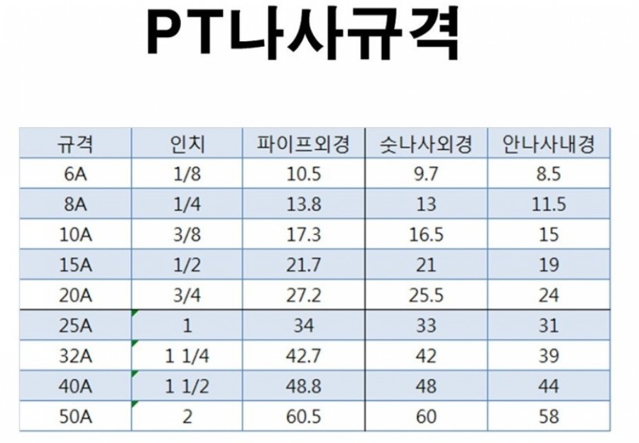 그리고 유압피팅 사이즈는 PT나사와 조금 다릅니다.